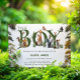 The design of the "It's a Boy Safari Baby Shower Invitation" is enchantingly beautiful, capturing the essence of joy and adventure. The word "BOY" takes centre stage, adorned with delightful illustrations of cute animals and vibrant greenery, creating a whimsical safari-themed ambiance. The foliage creates a sense of abundance and growth, symbolising the anticipation and excitement of welcoming a new life into the world. The overall design creates an atmosphere of celebration, evoking a sense of adventure and discovery. It invites guests to embark on a safari-themed journey, where they can join in the joyous anticipation of the little boy's arrival, surrounded by adorable animal companions and nature's beauty. Most lettering is editable - click the "Customise Further" button to edit. Matching items in our store PrettyDesignHouse. Thank you!