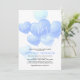 It's a boy baby shower invitations featuring a stylish white background that can be changed to any colour, a variety of soft blue heart balloons, and a modern baby party template that is easy to personalise.