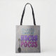 It's Just a Bunch of Hocus Pocus Glitter Magic tote bag with turquoise, purple and dark magenta and black simulated glitter on a background of silver simulated glitter and simulated gold foil dots. This is the fashion statement of the Halloween season!