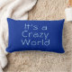 "It's a Crazy World!" Cobalt & Blue Funny Fun Lumbar Cushion