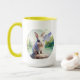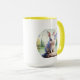 This is a mugs with a cute rabbit sitting on it.