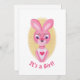 It's a girl announcement card with an illustration of a cute pink little bunny girl