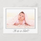 It's a girl! photo announcement postcard. Stylish modern minimalist black white design.