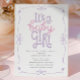 Elevate your baby girl shower with our charming invitation featuring a delightful purple and white colour scheme. This trendy design showcases a hand-drawn coquette bow frame, adding a touch of elegance and whimsy to your celebration. Perfect for setting the tone for a memorable gathering, this invitation not only conveys the essential details but also reflects the joy and excitement of welcoming your little one. Make a lasting impression on your guests and celebrate in style with this beautiful invitation.