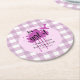 It's a Girl Cute Pastel Purple Gingham Baby Shower Round Paper Coaster
