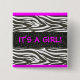 "IT'S A GIRL!" Hot pink and zebra stripes button