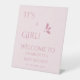 It's A Girl! Minimalism Pastel Pink Baby Shower Pedestal Sign