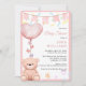 It's a Girl Pink balloon CutTeddy Bear baby shower Invitation