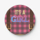 It's a girl Rustic Lumberjack Flannel Baby Shower Paper Plate