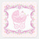Lacy Style Baby Carriage with Baby Girl. Decorative Frame and Background. Easy to customise. Original copyright illustration by pj_design.