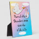 After my poor review of this cute name meaning easel for girls, I was contacted by Zazzle and offered a partial refund. Also, in that communication, it was explained to me that I had lots of control over the colors, font sizes and such for my design. See aboveIn all honesty, it was my fault the first easel turned out as badly as it did. The default colors on the design were not easy to see on the background color and I also put in too much verbiage.