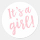 It's A Girl Trendy Script in Pink Classic Round Sticker