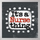 "It's A Nurse Thing" is a cute text design in grey with black and red text, along with a white accent shape and white textured whimsical dots surrounding it.
