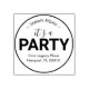 Create your own It's a Party return address rubber stamp. This simple circular design features a modern style hand lettered script typography. Perfect for Birthday parties, bridal showers, baby showers, and wedding engagement parties.