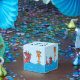 It's a pool swim party favour box featuring comical polka-dotted otters frolicking in the water.
