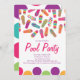Start your pool party off right with our modern summer fun beach POOL Party Invitation. Perfect invitation for a teen swimming party. Our invitation features bold, bright & colourful flip flops set on a white background with a turquoise blue, purple & hot pink polka dots border. The back of our invitation features a matching polka dot back for that extra special touch. Just personalise with your information and you're all set to go! Matching items including birthday postage stamps, favour stickers, thank you cards & thank you stickers are also available in our shop. www.celebrateitinvites.com