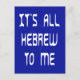 Text reading "IT'S All HEBREW TO ME" in a faux Hebrew font. A parody of the saying "It's all Greek to me" used when something is incomprehensible.