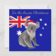 "It's an Aussie Christmas" text. An Australian Koala with the Australian flag in the background.