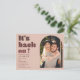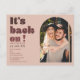 It's back on blush red script photo save the date postcard