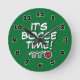 It's bocce time! funny wall clock with numbers. Green or custom background color. Add your own personalized text or humorous quote. Fun design for bocce lover, player, fan etc. Custom clock for home or club house.
