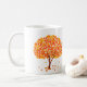 Coffee mug is shown with a lovely autumn trees art print. It's Fall Yall text