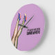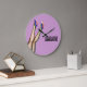 Fun Customisable Legs in The Air - It's Gin O'Clock Somewhere Wall Clock. Lilac background with ladies legs in seamed black stockings and red and blue high heel shoes. You can change the text as you wish. Background colour can also be changed. Just click on 'Customise'. From my vintage pin up girls series, adapted from vintage pinup poster art. Vintage pinup model Pin-Up girl.