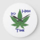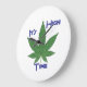 It's High Time. It certainly is, and this hip High Time clock is a cool way to announce it. Green weed leaf with blue violet text staggered with the words "It's High Time." You get it, so . . . get it.
