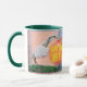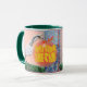 An egret speaks - In the original artwork by ZoeSPEAK on this Mug, an egret, a Florida shore bird with wings out spread, expresses an opinion of the current climate. The text says “It’s hot!”, over a wavy ball of summer time heat.