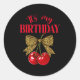 It's My Birthday Cute Cherry Leopard Coquette Bow Classic Round Sticker
