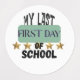 Capture the bittersweet essence of an articulate moment with this eloquent phrase: "It's my last first day of school." This design encapsulates the unique blend of nostalgia and excitement that accompanies the final first day of formal education. The typography and layout evoke a sense of accomplishment, marking the journey from the beginning to the end of an educational era. A perfect addition to commemorate graduation, academic achievements or any other milestone.