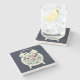 The coasters are gorgeous, a quality feel and heavy weight. They look like a precious archeological find. A rustic stone juxtaposed with a modern floral black and white print. I like the way the print goes slightly imperfect on the cut stone edges giving them a kind-of natural beauty.
