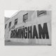 This postcard features a black and white photograph of the 'It's Nice to Have You in Birmingham' mural found near John's City Diner in downtown Birmingham, AL.