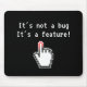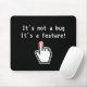 It's not a bug it's a feature funny programming Mouse Pad. Fun Christmas or Birthday gift idea for programmer, webdesign, internet coder, co worker, colleague, software engineer, employee, friends, family, dad etc. Pixel art mouse icon with custom text. Office humour design.