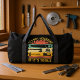 This duffle bag is a must-have for any tool enthusiast, featuring the humourous phrase "IT'S NOT HOARDING IF IT'S TOOLS." The design showcases various tools like a hand saw, axe, hammer, and stapler against a vibrant retro striped background. Perfect for carrying your gear or as a witty gift for the handyman or DIYer who always has the right tool for the job. Edit colour of the bag caps and body in the Design tool to your favored colours.