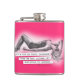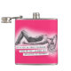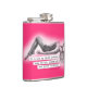 The flask itself is fine. It’s a cheap flask, obviously bought in bulk, however am prepared to overlook that. Given that it is a personalized item, I would have liked to have seen gift boxing instead of the generic packaging. Terrible printing, and/or quality. It’s a cheap, tacky vinyl. It is not cut straight and is also applied in a way that it is overhanging the bottom, causing the glue to catch on items and it will eventually roll and tear, damaging the wrap.