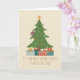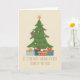 Cute brown cat climbing the Christmas tree for cat lovers and feline owners. The message is customisable.