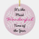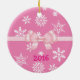 It's the Most Wonderful Time of the Year Pink Christmas Ornament with pretty white snowflakes and a white polka dot pink bow and ribbon the back. Make sure to edit the year on the back!