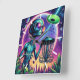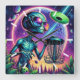 Disc golfing alien ai art. Colourful extraterrestrial throwing a disc in outer space.