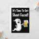 It's Time To Get Sheet Face featuring a cartoon ghost holding a big mug of beer. Get everyone in the party mood with this hilarious, cartoon ghost, adult Halloween invitation.