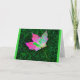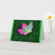 A photograph of a single pink hued autumn leaf, photographed against bright green grass, is the subject of my "It's Time To Leaf Another Year Behind! funny Birthday Card.