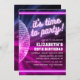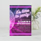 Retro 70's Disco Ball Party Invitation featuring pink and purple glitter balls on a glitter background. This design is suitable for a modern retro 70's themed birthday celebration.
