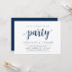 Modern Rustic, Navy Blue Script themed invitation card (with card title: It's time to party). It is perfect for your post wedding elopement reception / post wedding celebration party. Add your details in matching black font / lettering.
