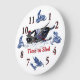 Purchased this online and it got delivered quickly. It was a present for my Dads 70th birthday. He loves clocks so decided to get him one with something written on it. Battery went in and it started working straight away. Dads had no issues with it. Printing was just how it came up online.