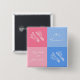 A cute pink and blue chequered birth announcement twin boy and girl baby shower party favour button with two sets of newborn baby footprints. Personalise by adding the names of the precious baby girl and boy twins to the custom text area.