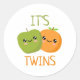 Cute Orange and Apple characters with text reading: "It's Twins".