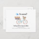 On the move on my bike moving change of address announcement card featuring a watercolor feminine bicycle with a flower basket and luggages on the rack. Perfect to let friends and family know about your new address and where the likely housewarming party will happen