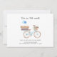 On the move on my bike change of address announcement card featuring a watercolor feminine blue bicycle with a flower basket and luggages on the rack. Perfect to let friends and family know about your new address and where the likely housewarming party will happen