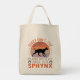 The bag is well made and very strong. Holds a good amount of groceries. I get asked about it all the time. The printing is great and very clear.