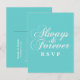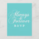Trendy and chic Always and Forever Wedding Response Postcard featuring a beautiful handwritten typography text design in white. This simple and elegant RSVP card sets the tone for a classy and romantic wedding and is easy to customise with your wedding details. Click "Customise It" to find more personalisation options. Background colour can be changed to any colour you would like.