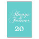 Trendy and stylish Always and Forever Wedding Table Number Card featuring a beautiful handwritten typography text design in white. This simple and elegant table card sets the tone for a classy and romantic wedding and is easy to customise with the appropriate table number(s). Click "Customise It" to find more personalisation options. Background colour can be changed to any colour you would like.